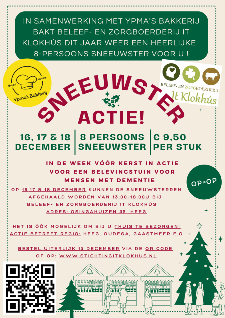 - U kunt de taart bestellen door een mail te sturen naar: info@stichtingitklokhus.nl